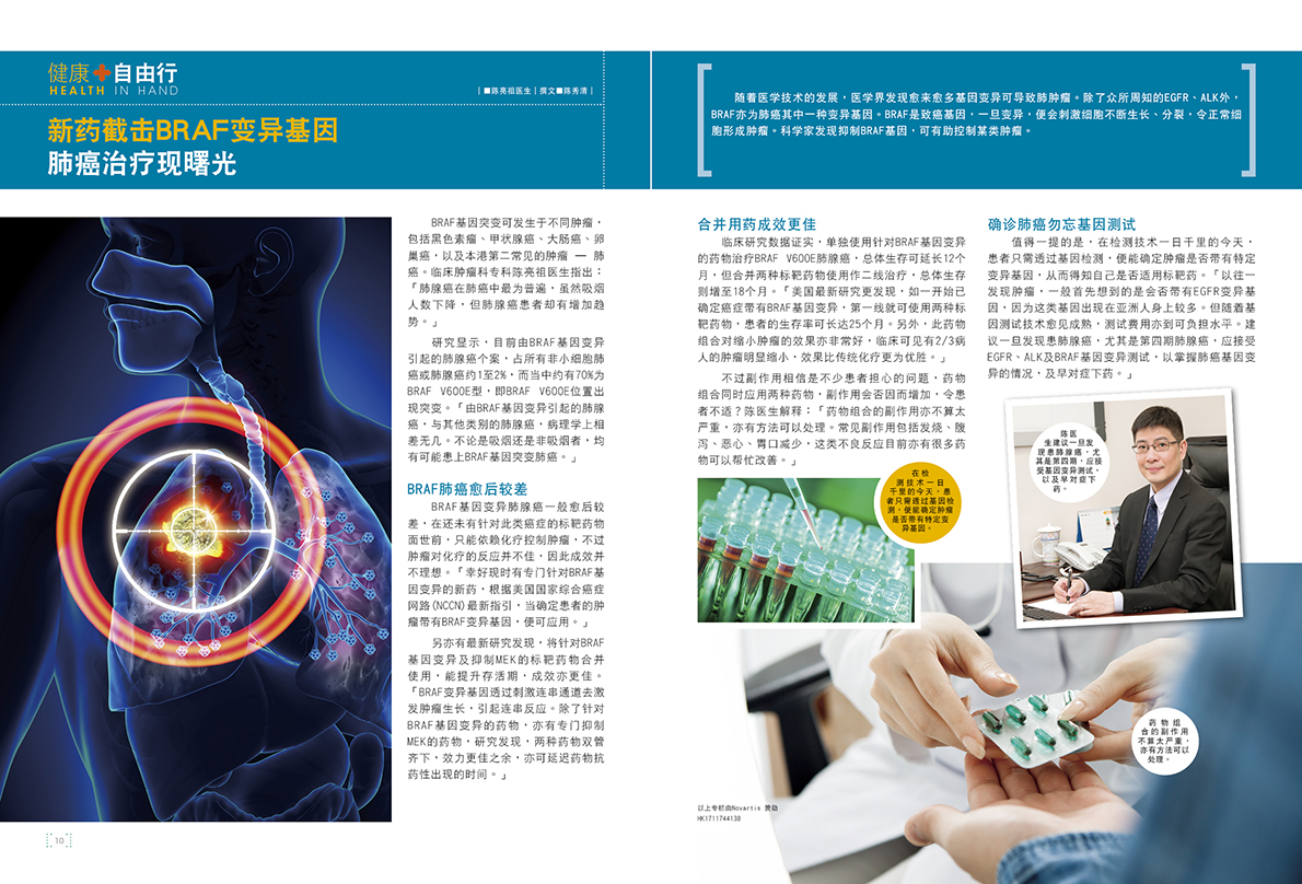 BRAF 基因突變可發生於不同腫瘤,包括黑色素瘤、甲狀腺癌、大腸癌、卵巢癌,以及本港第二常見的腫瘤-肺癌。臨床腫瘤科專科陳亮祖醫生指出:「肺腺癌在肺癌中最為普遍,雖然吸煙人數下降,但肺腺癌患者卻有增加趨勢。」