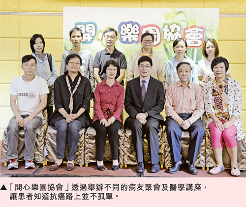 為促進本澳、海內外長期病患者及其家屬之間的交流,並普及治療和復康知識,本地志願組織「開心樂園協會」於今年2月正式成立。會場林詠儀表示,由於很多患者對癌症缺乏了解,再面對一連串手術、化療或電療時,會容易產生壓力而令情緒備受困擾,也正因為治療癌症是一場長期抗戰之路,旁人的鼓勵關懷能對患者及家屬有很大幫助,「為協助患者建立正面積極的態度,本會會定期舉辦不同的病友聚會,透過相互打氣及交換心得,藉由別人的經驗令自己獲得能量,讓患者知道他們在抗癌路上並不孤單。」協會除有專業醫療人士為患者及家人解答疑難,亦會與不同的團體合作舉辦醫療講座,分享最新的癌症資訊及護理知識,以加深患者和家屬對癌症的認識,有助建立正面態度共抗癌症。