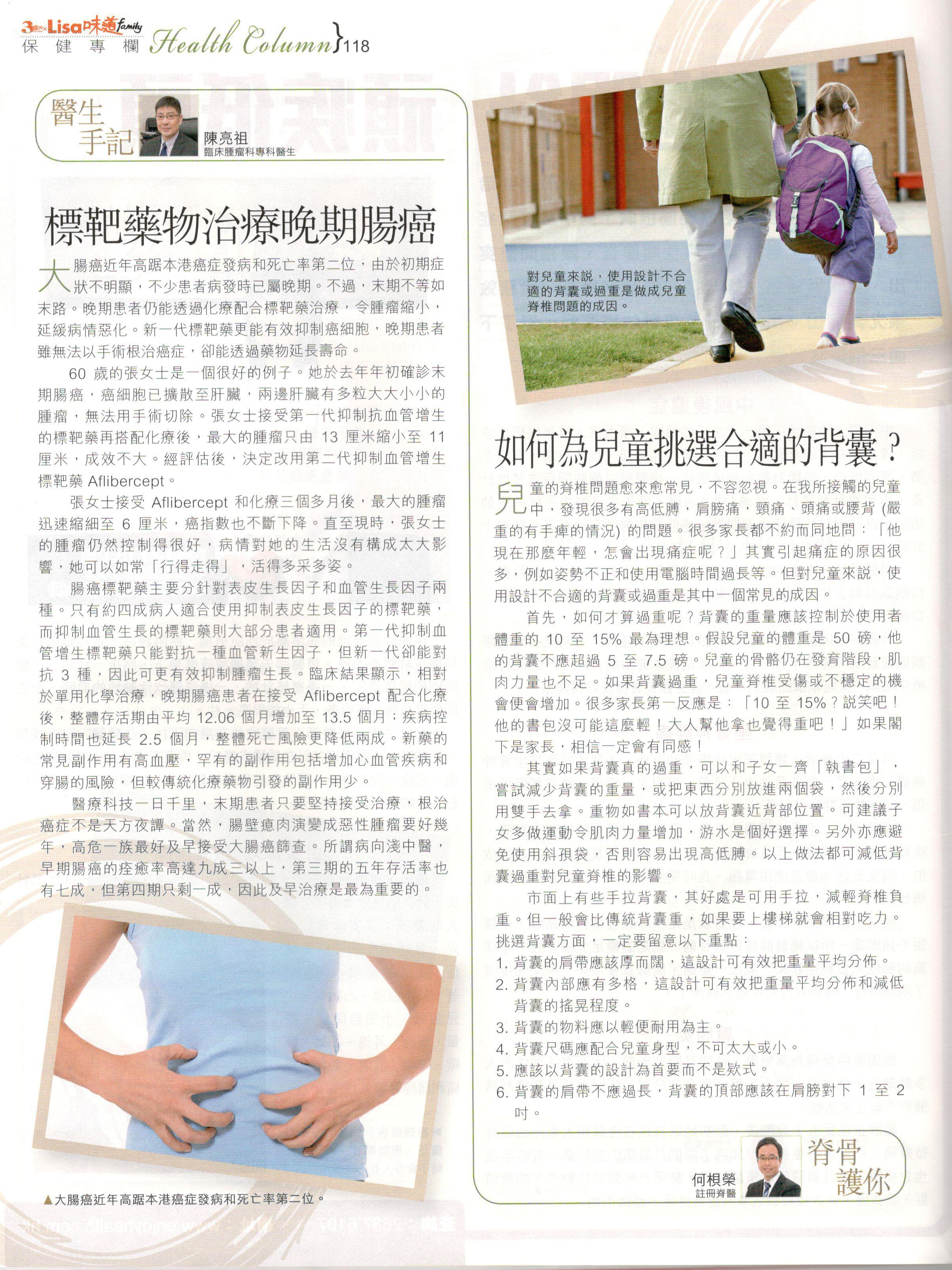 大腸癌近年高踞本港癌症發病和死亡率第二位,由於初期症狀不明顯,不少患者病發時已屬晚期。不過,末期不等如末路。晚期患者仍能透過化療配合標靶藥治療,令腫瘤縮小,延緩病情惡化。新一代標靶藥更能有效抑制癌細胞,晚期患者雖無法以手術根治癌症,卻能透過藥物延長壽命。