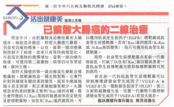 現時,抗血管生長標靶藥亦有新一代藥物面世,打破了以往有「Ras」基因變異患者一線抗血管生長標靶藥失敗即無標靶藥物可用的困局。
