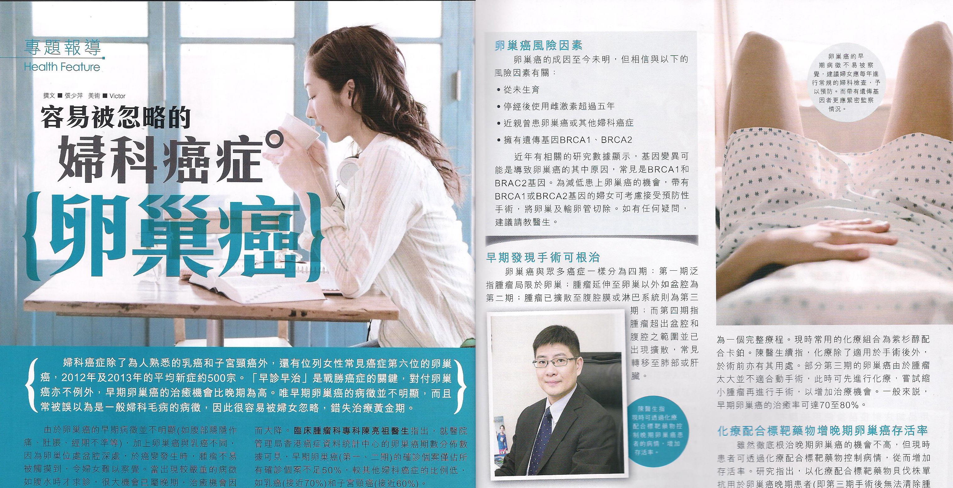 婦科癌症除了為人熟悉的乳癌和子宮頸癌外,還有位列女性常見癌症第六位的卵巢癌,2012年及2013年的平均新症約500宗。「早診早治」是戰勝癌症的關鍵,對付卵巢癌亦不例外,早期卵巢癌的治癒機會比晚期高。唯早期卵巢癌的病徵並不明顯,而且常被誤以為是一般婦科毛病的病徵,因此很容易被婦女忽略,錯失治療黃金期。