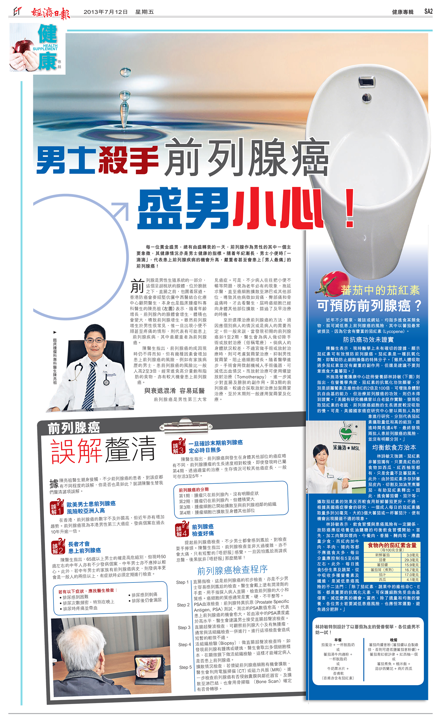 陳醫生表示,現時醫學上未有確切的證據,顯示茄紅素可有效預防前列腺癌。茄紅素是一種抗氧化劑,即幫助防止細胞損傷的特殊分子。「雖然人體吸取過多茄紅素並沒有嚴重的副作用,但還是建議不要刻意進食大量番茄。」