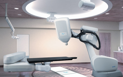 是利用兩個附屬於直線加速器上的機器手臂,於放射治療前即時掃描,取得電腦掃描影像進而了解確切的腫瘤位置,再經由電腦軟件的融合影像比對,矯正位置誤差,之後再施行治療。